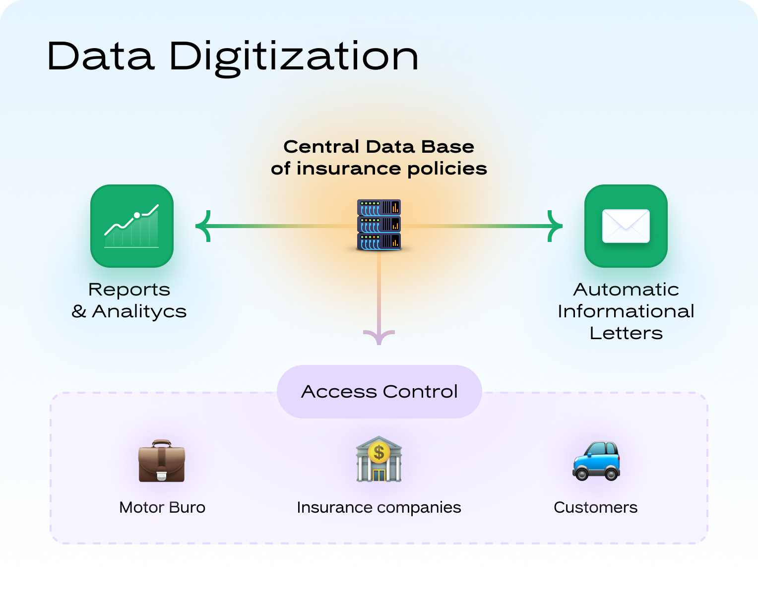 It recognizes various input data sources, verifies their integrity, types, date, etc., and converts them into the CDB. However, if it encounters any critical errors, the system blocks the download of the contract and informs a policyholder about detected flaws.